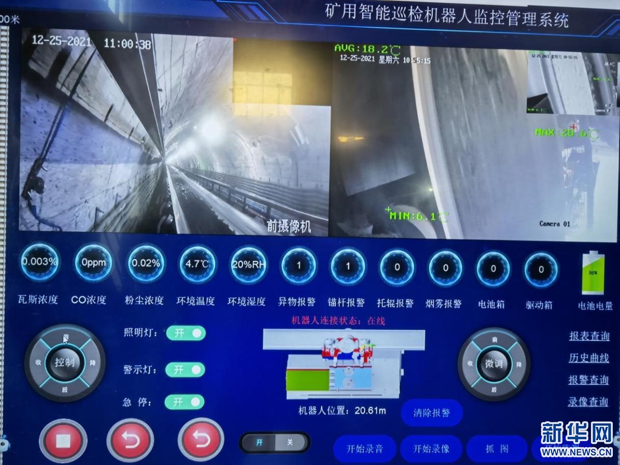 25日,在鄂爾多斯市麻地梁煤礦的輸煤傳送帶上,一臺礦用AI(人工智能機器人)“打工人”身著藍色“工衣”,行進在運輸皮帶上,它依靠一雙10CM大的“眼睛”,敏銳觀察著皮帶上源源不斷傳送的煤炭,并檢查異物。它身上安裝了高精度傳感器,可以實時將瓦斯、二氧化碳、粉塵濃度傳回麻地梁煤礦智能調度集控中心。