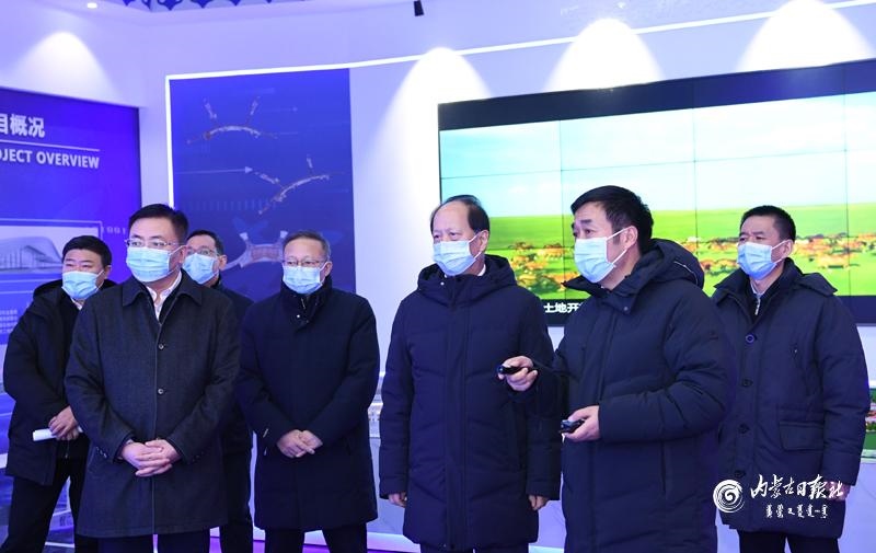 1月18日下午,自治區(qū)黨委書記、人大常委會主任石泰峰在呼和浩特新機場智慧展廳,聽取新機場主體建設情況介紹。內蒙古日報社融媒體記者 袁永紅 攝