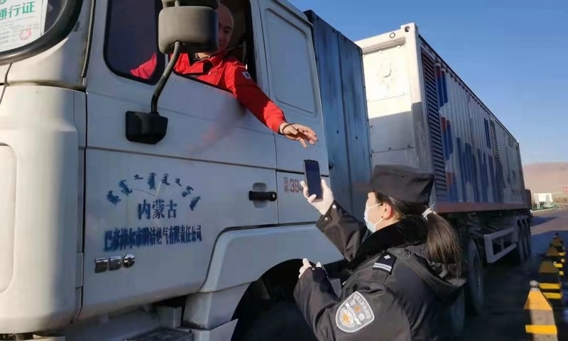 在巴彥淖爾市烏拉特中旗牧羊海疫情防控服務(wù)點(diǎn),工作人員正對來往的車輛人員進(jìn)行檢測、掃碼、詢問、登記……