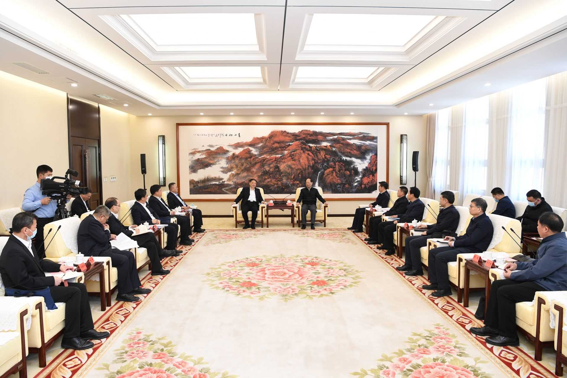 2月14日,自治區(qū)黨委書記、人大常委會(huì)主任石泰峰在呼和浩特會(huì)見中國華電集團(tuán)黨組書記、董事長溫樞剛。記者袁永紅攝