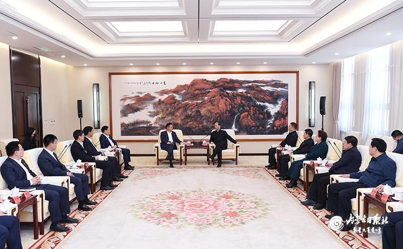 4月7日,自治區(qū)黨委書(shū)記、人大常委會(huì)主任石泰峰在呼和浩特會(huì)見(jiàn)TCL集團(tuán)、協(xié)鑫集團(tuán)和中環(huán)半導(dǎo)體企業(yè)負(fù)責(zé)人。內(nèi)蒙古日?qǐng)?bào)社融媒體記者 袁永紅 攝