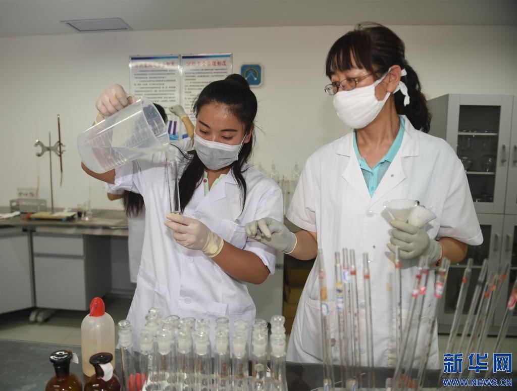 2017年7月12日,巴彥淖爾市農(nóng)村牧區(qū)飲水安全水質(zhì)檢測中心工作人員在進行水樣檢測。新華社記者鄧華 攝