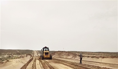 阿拉善左旗錫林高勒至通古淖爾農(nóng)村公路建設(shè)現(xiàn)場(chǎng) 攝影/孟根其其格