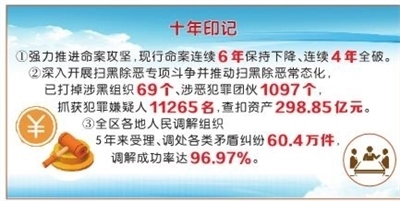 深入開展掃黑除惡專項斗爭并推動掃黑除惡常態(tài)化,2018年以來,已打掉涉黑組織69個、涉惡犯罪團伙1097個,抓獲犯罪嫌疑人11265名,查扣資產(chǎn)298.85億元。