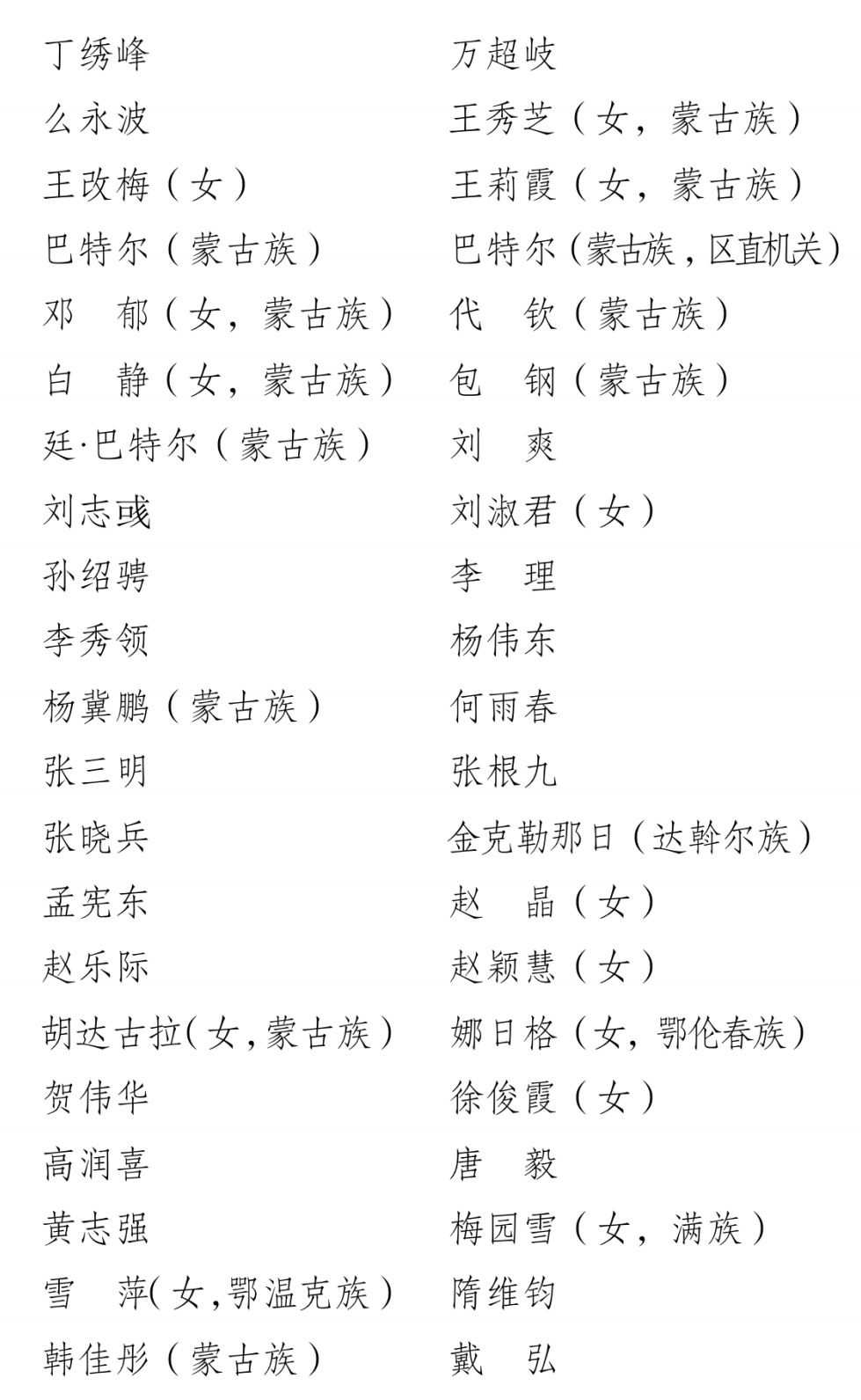 6月30日,內(nèi)蒙古自治區(qū)黨代表會(huì)議選舉產(chǎn)生出席黨的二十大代表42名。代表名單如下(按漢字姓名筆畫為序):