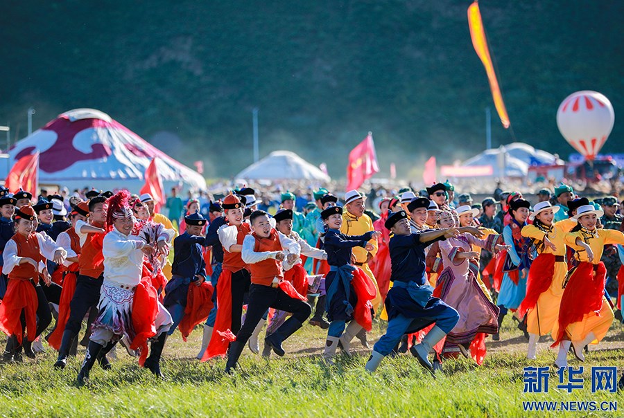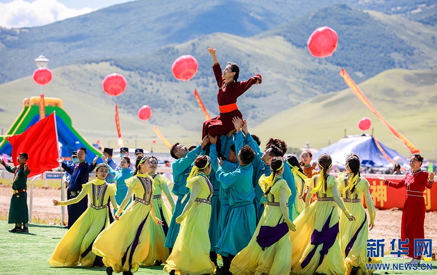 8月8日,烏蘭牧騎的隊(duì)員在開(kāi)幕式上踏歌起舞。新華網(wǎng)發(fā)(丁根厚攝)