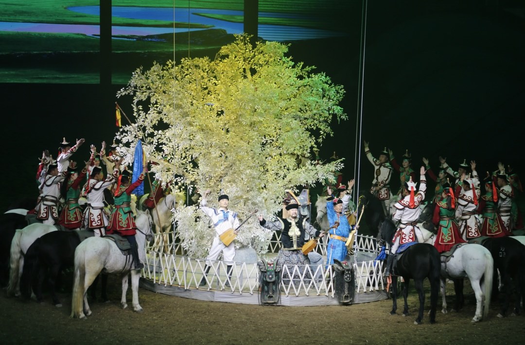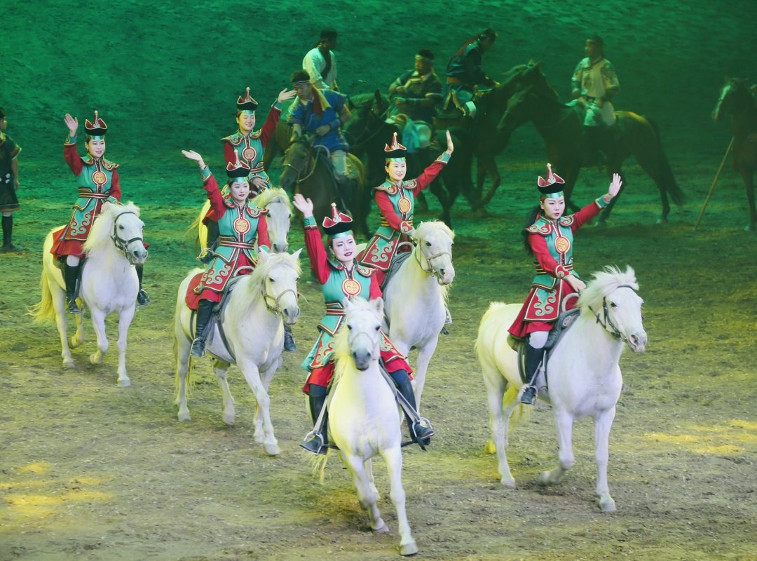 《千古馬頌》既具奪人眼球的觀賞性,又有直指人心的文化內(nèi)涵;既是一項(xiàng)填補(bǔ)內(nèi)蒙古馬文化駐場(chǎng)演出空白的旅游產(chǎn)品,又是一部挖掘蒙古民族與馬深厚情感的藝術(shù)史詩,成為近年來提升內(nèi)蒙古自治區(qū)文化產(chǎn)業(yè)核心競(jìng)爭(zhēng)力、展現(xiàn)民族融合團(tuán)結(jié)奮斗的一部?jī)?yōu)秀作品。(攝影/內(nèi)蒙古日?qǐng)?bào)·草原全媒記者郭偉偉)