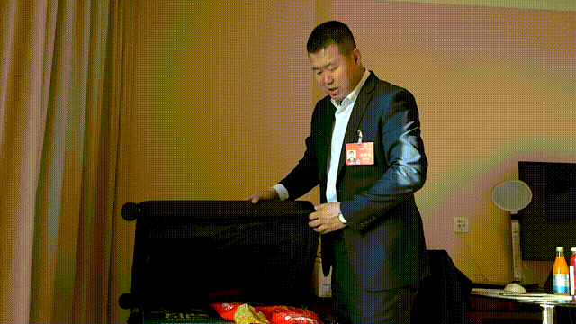 在全國(guó)人大代表、烏蘭察布市卓資縣十八臺(tái)鎮(zhèn)黃旗灘村黨支部書記、村委會(huì)主任薛志龍的行李箱里,幾只密封包裝的卓資熏雞、兩瓶不同吃法的亞麻籽油、些許袋裝的亞麻籽,占據(jù)了行李箱一多半的空間,這些獨(dú)有的美味也吸引了來(lái)自各地的全國(guó)人大代表的目光。