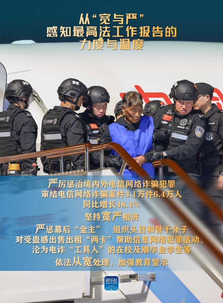 新華社北京3月9日電(記者高潔、馬知遙、袁秋岳)3月8日,最高人民法院工作報(bào)告提請十四屆全國人大二次會議審議。報(bào)告中列舉了不少案例,有的案件從嚴(yán)從重判決,有的從寬或無罪判決。讓我們從“寬與嚴(yán)”感知報(bào)告的力度與溫度。