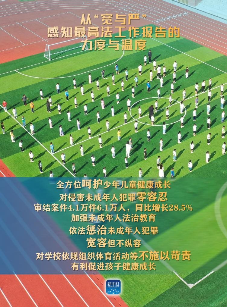 ——全方位呵護(hù)少年兒童健康成長。對侵害未成年人犯罪零容忍,審結(jié)案件4.1萬件6.1萬人,同比增長28.5%。