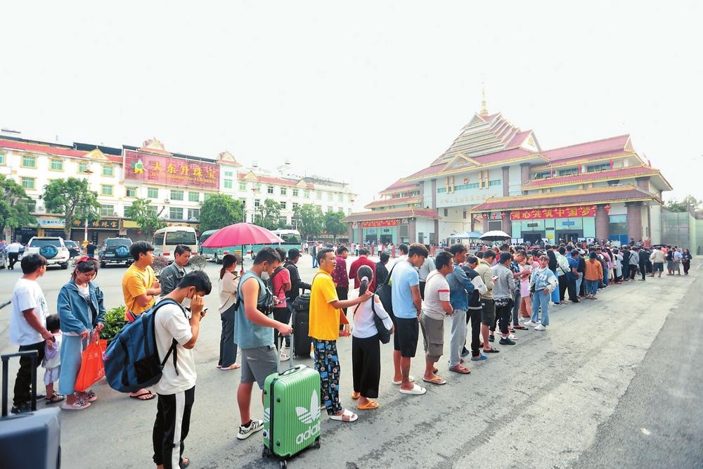邊民在云南瑞麗口岸排隊等待通關。云南日報記者陳飛攝