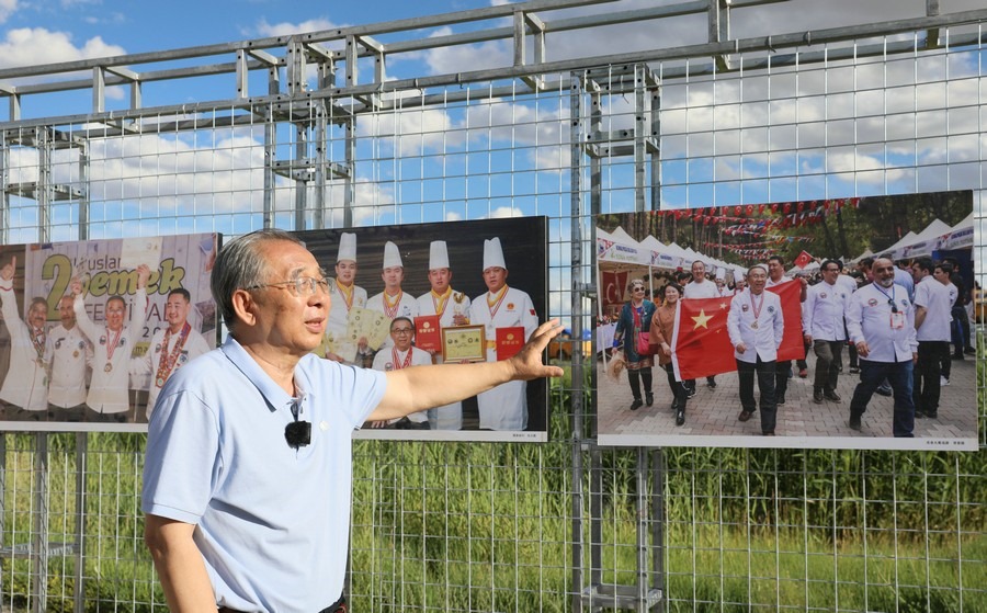 7月28日,第14屆《食色世界》攝影大展,在四子王旗格根塔拉草原旅游中心開展。圖為本次攝影展策展人、中國攝影家協(xié)會會員、中國人像攝影學會副會長、內(nèi)蒙古攝影家協(xié)會名譽主席郎立興正在介紹展品。