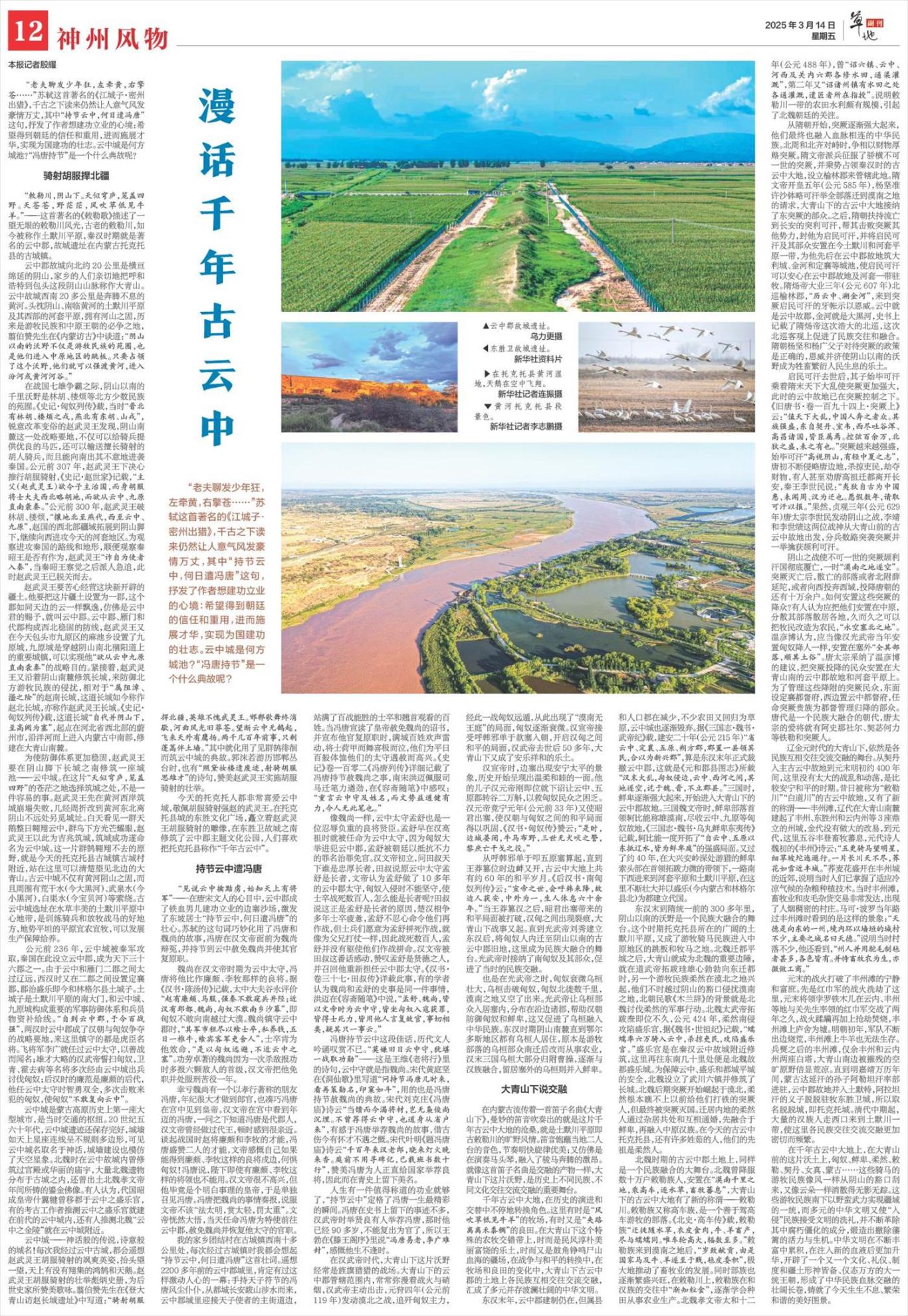 新華社北京3月14日電 3月14日,《新華每日電訊》發(fā)表題為《漫話千年古云中》的報(bào)道。