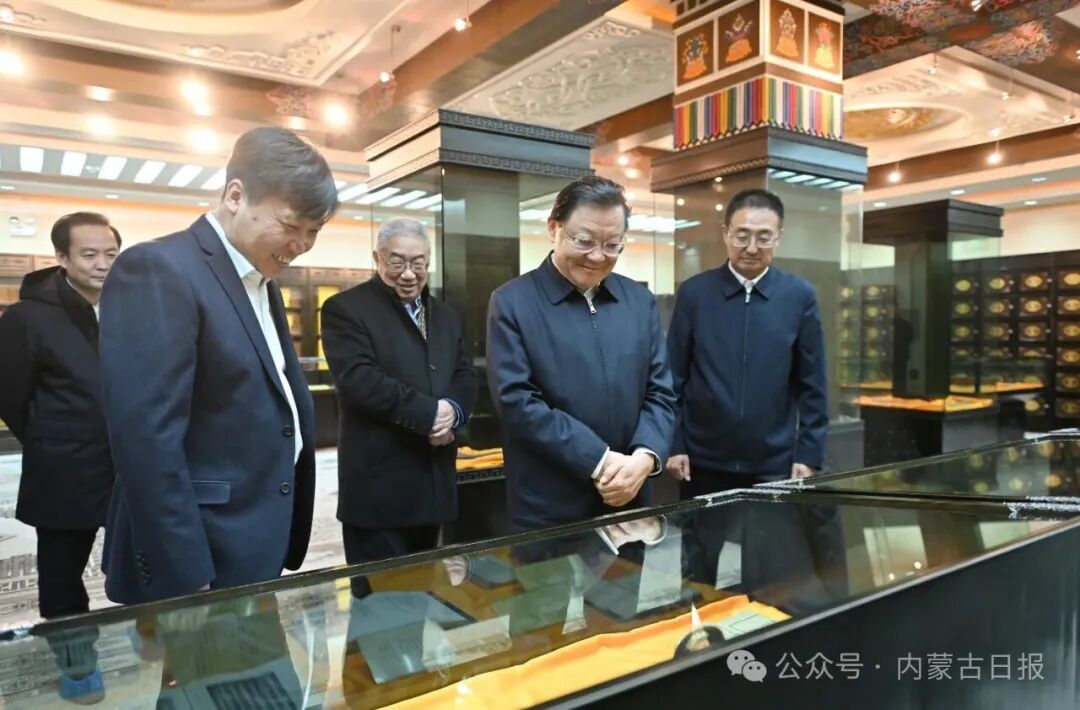初冬的內(nèi)蒙古大學(xué)校園,薄雪覆蓋、朝氣涌動(dòng)。在省部共建草原家畜生殖調(diào)控與繁育國家重點(diǎn)實(shí)驗(yàn)室、功能介孔材料實(shí)驗(yàn)室,王偉中認(rèn)真聽取生物育種、高寒地區(qū)電池儲(chǔ)能系統(tǒng)研發(fā)等進(jìn)展情況介紹,與科研人員深入交流,關(guān)切詢問相關(guān)技術(shù)市場化應(yīng)用前景。他說,內(nèi)蒙古推進(jìn)科技創(chuàng)新,要堅(jiān)持有所為有所不為,聚焦特色產(chǎn)業(yè)和優(yōu)勢領(lǐng)域腳踏實(shí)地地干,一定大有作為。希望內(nèi)蒙古大學(xué)在“雙一流”建設(shè)中強(qiáng)化使命擔(dān)當(dāng),緊扣生物育種、草業(yè)乳業(yè)、儲(chǔ)能等優(yōu)勢特色學(xué)科,沉下心來攻克關(guān)鍵核心技術(shù),努力取得更多成果。要堅(jiān)持以科技創(chuàng)新需求為牽引,主動(dòng)與科研院所、創(chuàng)新平臺(tái)、頭部企業(yè)聯(lián)手,加大科研設(shè)施開放共享力度,引導(dǎo)更多有實(shí)力的企業(yè)投入研發(fā),推動(dòng)更多科研成果從實(shí)驗(yàn)室走向生產(chǎn)線。要廣開進(jìn)賢之路、廣納天下英才,做好筑巢引才、以才引才、為才搭臺(tái)工作,確保人才引進(jìn)來、留得住、用得好。在圖書館、蒙古文古籍文獻(xiàn)展閱室,王偉中仔細(xì)察看館藏文獻(xiàn),詳細(xì)詢問圖書文獻(xiàn)資源建設(shè)、研究開發(fā)等工作,叮囑有關(guān)部門要牢記習(xí)近平總書記殷切囑托,以鑄牢中華民族共同體意識為主線,切實(shí)加強(qiáng)對蒙古文古籍的搜集、整理與保護(hù),挖掘弘揚(yáng)蘊(yùn)含其中的民族團(tuán)結(jié)進(jìn)步思想內(nèi)涵,引導(dǎo)各族人民牢固樹立“四個(gè)與共”理念。
