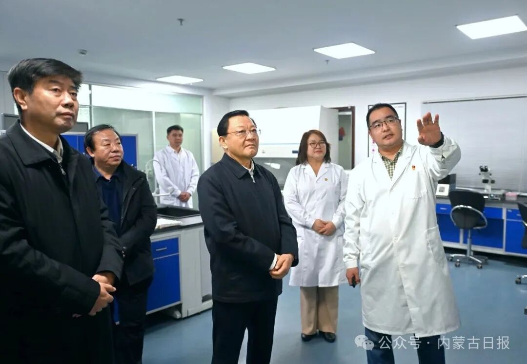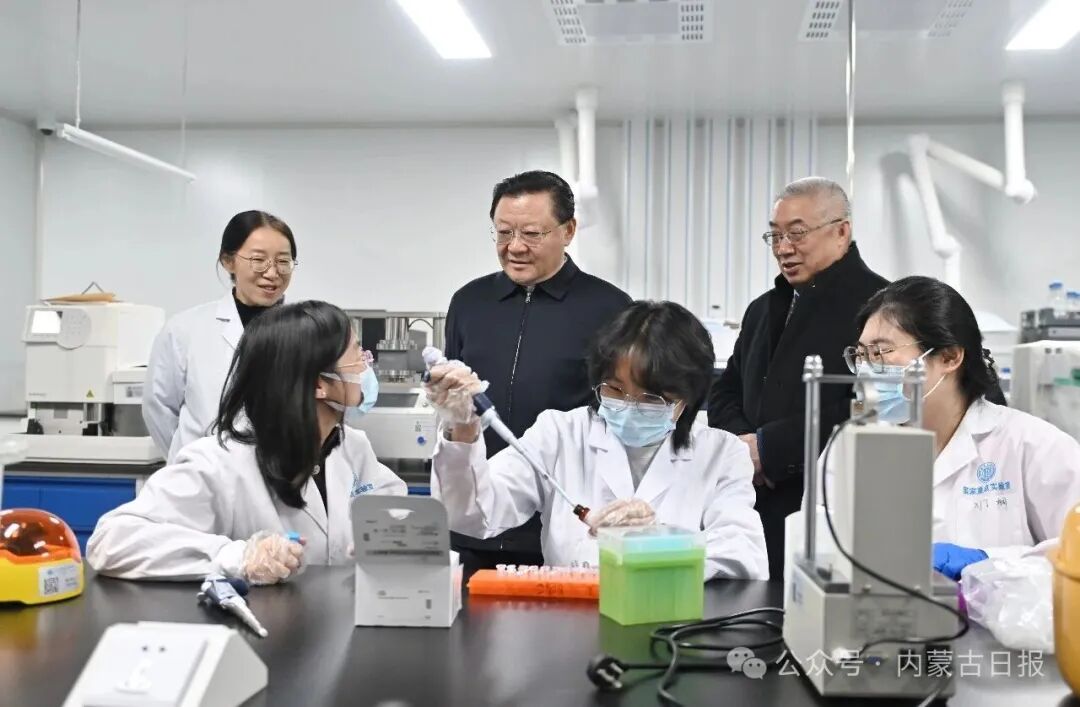 12月16日,自治區(qū)黨委書記王偉中來到畜牧研究所實(shí)驗(yàn)室,認(rèn)真了解科研平臺(tái)建設(shè)、技術(shù)攻關(guān)進(jìn)展。草原云·內(nèi)蒙古新聞網(wǎng)記者 馬建兵 攝