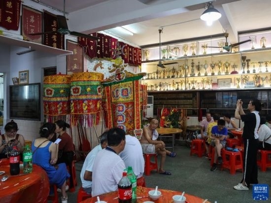 6月22日,佛山疊滘潭頭村文化站擺滿了龍船賽獎(jiǎng)杯和錦旗。