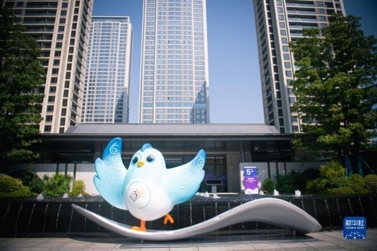 10月16日,杭州亞殘運(yùn)會(huì)吉祥物“飛飛”在開(kāi)村儀式上。新華社記者 江漢 攝