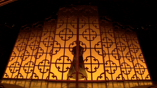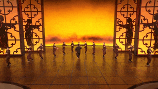 《詠春》來自舞劇《詠春》選段,已經(jīng)上演了百場(chǎng),但在春晚是個(gè)特別的版本。為了創(chuàng)造出更加意蘊(yùn)豐富的想象空間,總臺(tái)臺(tái)長慎海雄在推薦這個(gè)舞劇片段時(shí),提出了幾個(gè)建議,包括演員服裝從黑色的香云紗改為絳紅色,男女主角之間的關(guān)系要從男主角一一過招“大敗”女主角改為相互切磋武藝,開場(chǎng)以男主角的武術(shù)剪影來增強(qiáng)吸引力,通過使用剪影效果來展現(xiàn)“葉問”的出場(chǎng)。當(dāng)燈光亮起,窗欞上“詠春拳”三個(gè)書法大字淡去,“葉問”的剪影如同舞動(dòng)的水墨畫一般,隨即演員閃身舞出屏風(fēng),影子與真身共舞。由虛入實(shí),由平面到立體,“剪影”的設(shè)計(jì)讓短短半分鐘的獨(dú)舞大大增加了層次感和觀賞性,為空曠的舞臺(tái)創(chuàng)造出一個(gè)“頂天立地”的葉問之影,視覺震撼瞬間放大,堪稱畫龍點(diǎn)睛之筆。