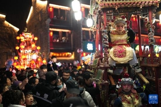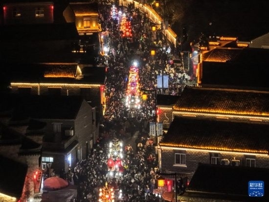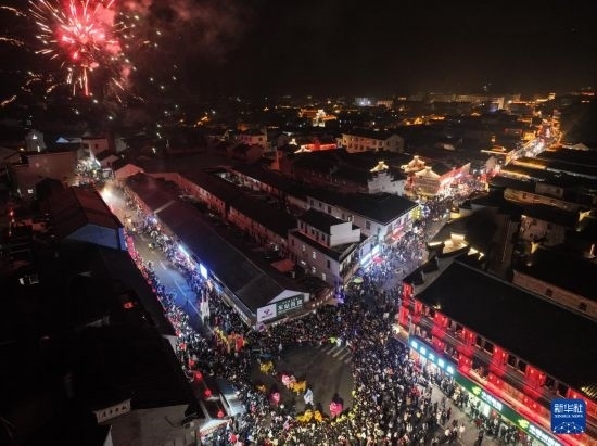 當日,有500多年歷史的前童元宵行會在浙江省寧海縣前童古鎮(zhèn)舉行。每年正月十四、十五舉行的前童元宵行會始于明中葉,群眾以鳴群鑼、抬鼓亭、放銃花等方式紀念祖先開渠鑿砩、灌溉農(nóng)田的功德,祈愿年景豐收。2014年,前童元宵行會入選第四批國家級非物質(zhì)文化遺產(chǎn)名錄。近年來前童古鎮(zhèn)發(fā)展旅游經(jīng)濟,元宵行會成為展示鄉(xiāng)村振興的重要窗口。
