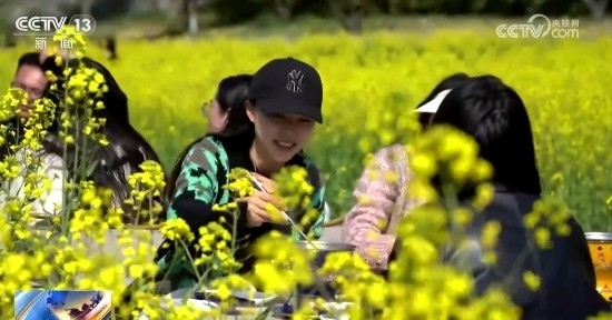 在宜昌市夷陵區(qū),這片油菜花田依山傍水,村居散落其中,構(gòu)成一幅優(yōu)美的田園畫(huà)卷。中午時(shí)分,一場(chǎng)小型音樂(lè)會(huì)在油菜花田中拉開(kāi)帷幕,旋律與花海邂逅,如同大珠小珠落玉盤(pán),叮叮當(dāng)當(dāng),又如泉水叮咚般悅耳。游客置身其間,吃著火鍋、品著咖啡,一切煩擾都被洗滌殆盡。