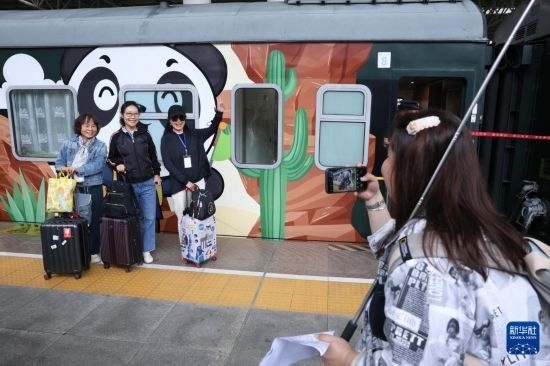 當(dāng)日,一列搭載200余名游客的Y477次“多彩貴州號”貴陽——西雙版納——老撾“熊貓專列”從貴陽火車站正式啟程,開啟老撾異域風(fēng)情游。據(jù)介紹,“熊貓專列”是由中國鐵路成都局集團(tuán)有限公司運營的旅游列車,以熊貓為設(shè)計主題,通過多種形式展示地域文化與民族特色。