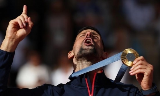 8月4日,焦科維奇在頒獎(jiǎng)儀式上慶祝。當(dāng)日,巴黎奧運(yùn)會(huì)網(wǎng)球項(xiàng)目男單決賽在羅蘭·加洛斯體育場(chǎng)舉行,塞爾維亞選手焦科維奇2比0戰(zhàn)勝西班牙選手阿爾卡拉斯,獲得冠軍。 新華社記者 高靜 攝