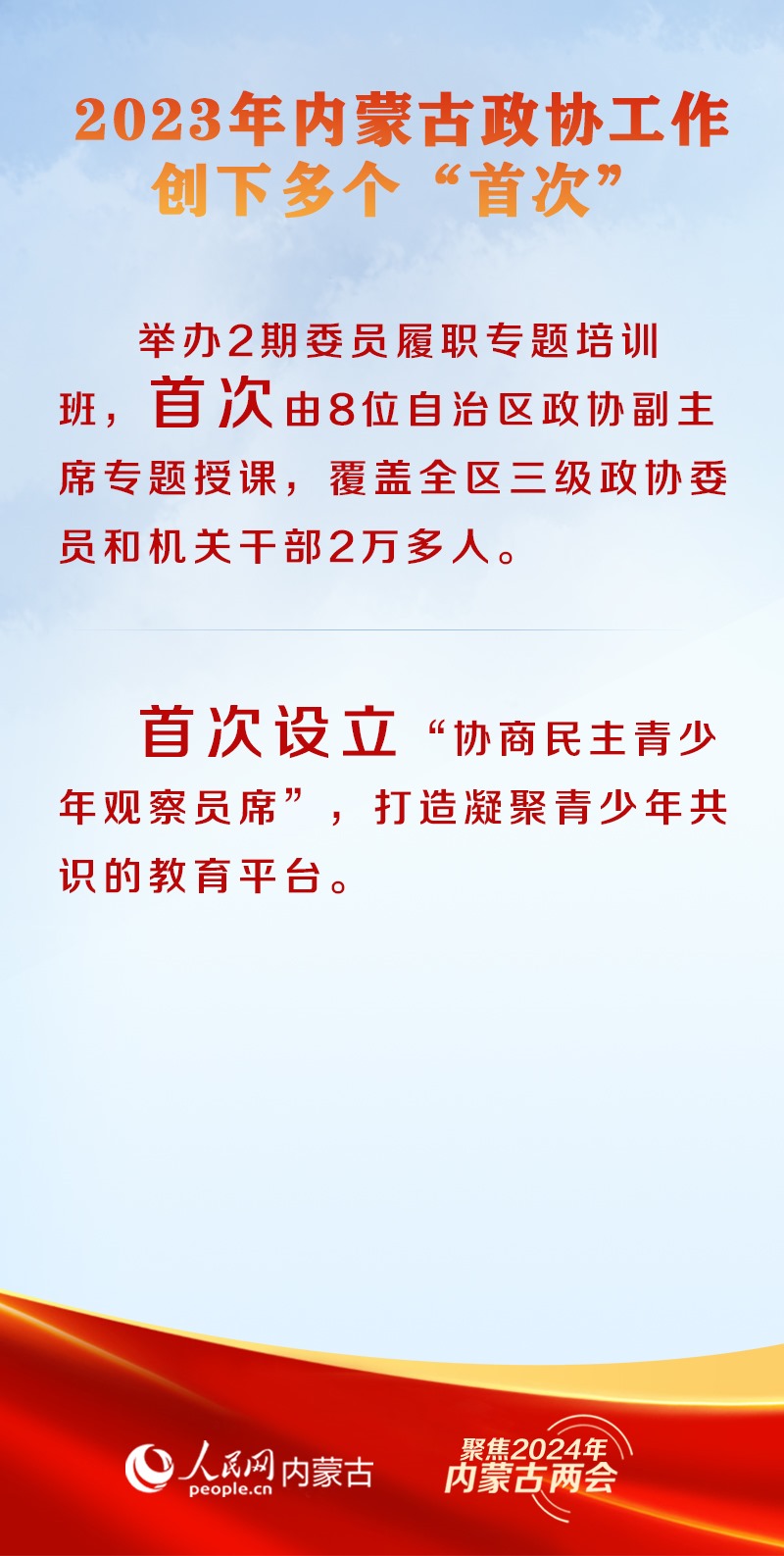 1月29日上午9時(shí),中國人民政治協(xié)商會(huì)議第十三屆內(nèi)蒙古自治區(qū)委員會(huì)第二次會(huì)議在內(nèi)蒙古人民會(huì)堂開幕。2023年,內(nèi)蒙古自治區(qū)政協(xié)堅(jiān)持以改革思維、創(chuàng)新理念、務(wù)實(shí)舉措推進(jìn)履職能力建設(shè),推出多項(xiàng)創(chuàng)新舉措,開創(chuàng)了新時(shí)代政協(xié)工作新局面。