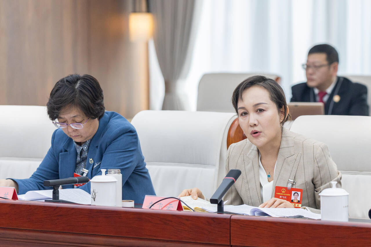 3月9日,全國人大代表孟達(dá)英(左)在審議“兩高”工作報(bào)告時(shí)建議,最高人民法院應(yīng)出臺(tái)有關(guān)破壞濕地行為定罪量刑標(biāo)準(zhǔn)的有關(guān)法律配套司法解釋。草原云記者 馬建兵 攝