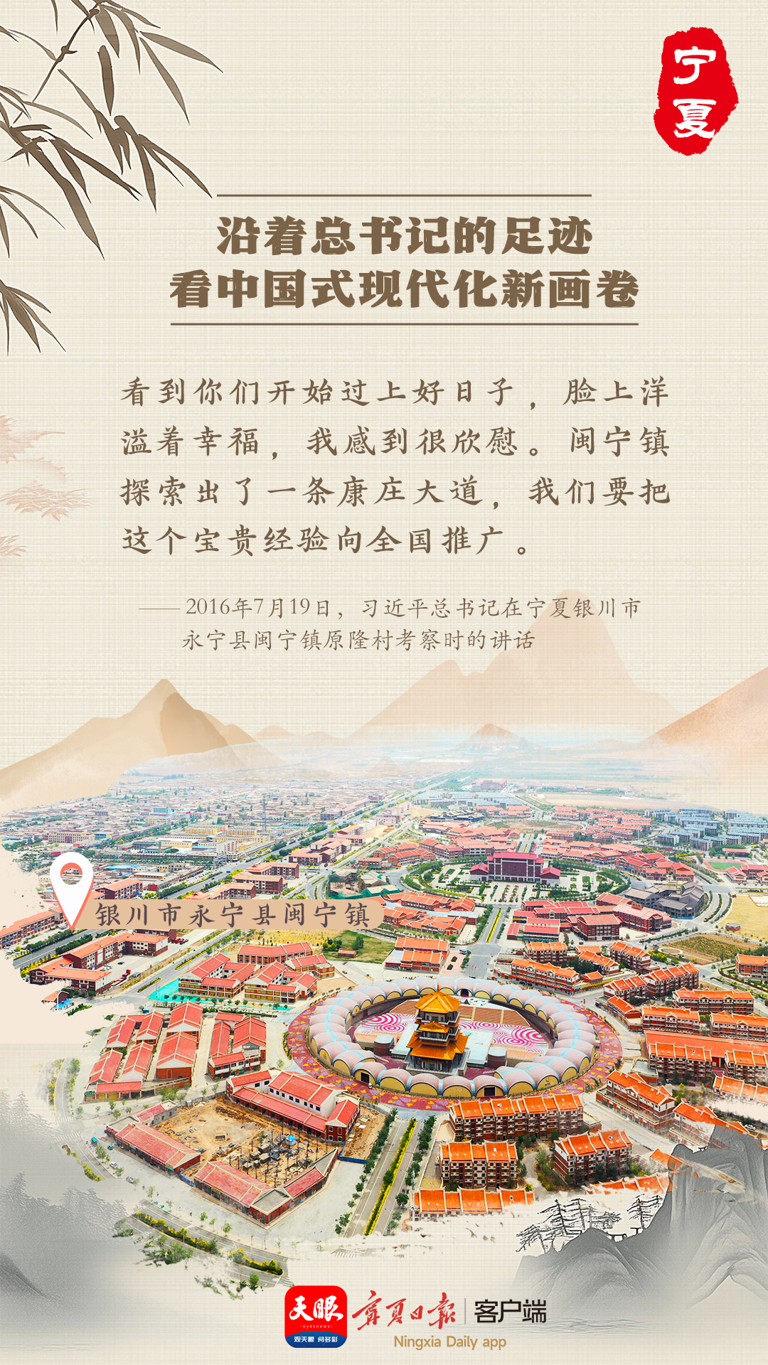 閩寧村的奠基,開啟了閩寧兩省區(qū)對(duì)口扶貧協(xié)作的新篇章。20多年來(lái),閩寧村從無(wú)到有、從弱到強(qiáng),形成了特色種植、特色養(yǎng)殖、文化旅游、設(shè)施農(nóng)業(yè)、商貿(mào)物流等產(chǎn)業(yè),移民年人均可支配收入從500元躍升到1.8萬(wàn)多元。曾經(jīng)的“干沙灘”變成了綠樹成蔭、良田萬(wàn)頃、經(jīng)濟(jì)繁榮、百姓富裕的“金沙灘”。
