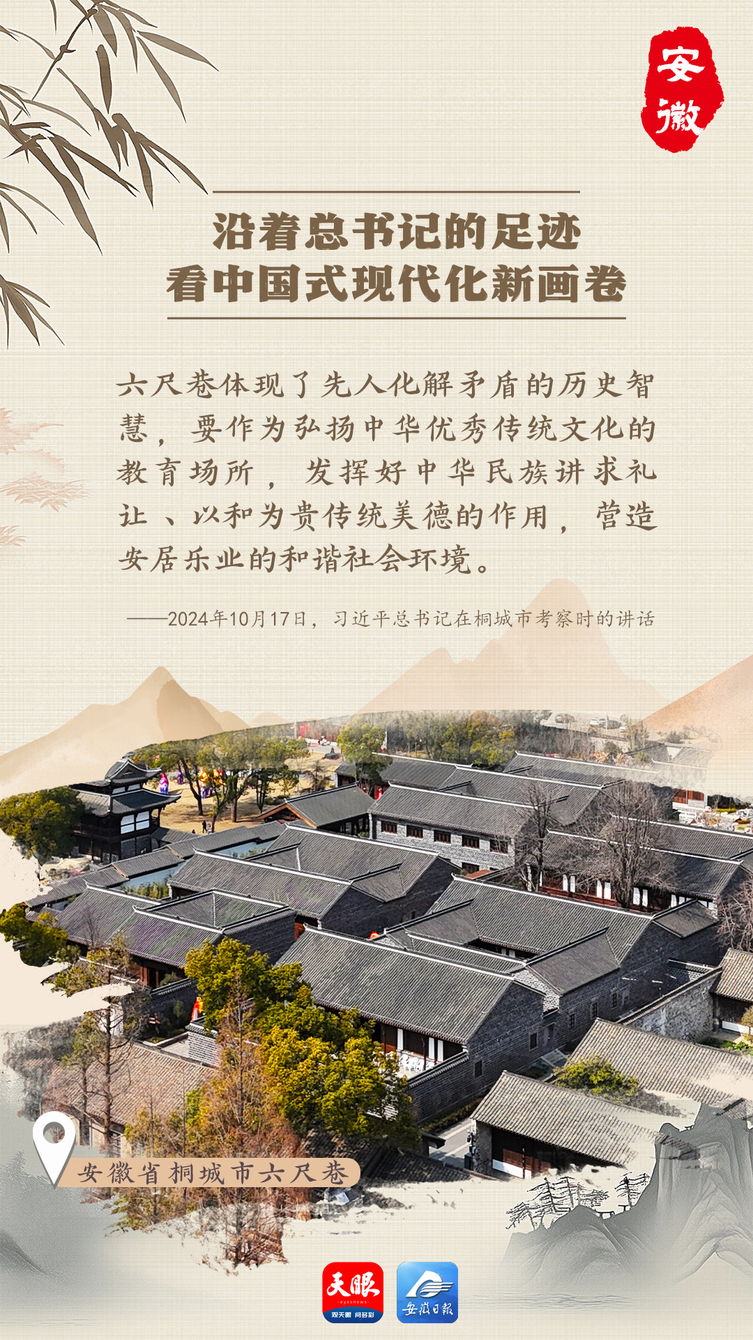 在桐城市六尺巷景區(qū),歷史與現(xiàn)代交織成一幅獨(dú)特畫卷。這里傳承三百多年的“禮讓文化”生生不息,文物在數(shù)字技術(shù)助力下“鮮活”起來(lái)。2024年10月17日,習(xí)近平總書記親臨桐城市考察并作出重要講話,為當(dāng)?shù)匕l(fā)展注入強(qiáng)大動(dòng)力。