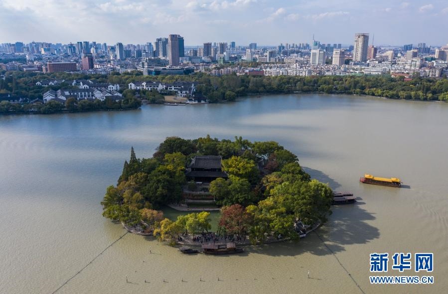 嘉興南湖湖心島(2020年10月27日攝,無人機(jī)照片)。新華社記者 徐昱 攝