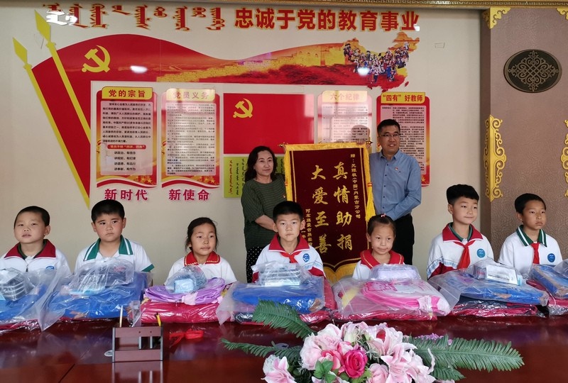 活動(dòng)當(dāng)天,人們來(lái)到阿拉善左旗蒙古族實(shí)驗(yàn)小學(xué),為烏日力格等10位貧困蒙古族學(xué)生送去學(xué)生用品及衣物,雙方支部還為學(xué)校捐贈(zèng)無(wú)限極植雅洗手液兩箱。