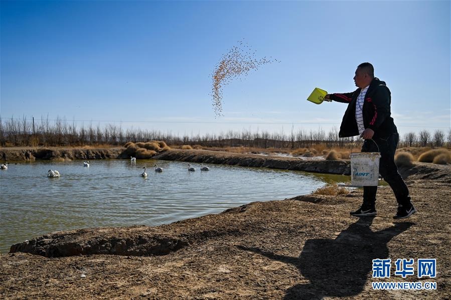 4月4日,烏梁素海濕地水禽自然保護區(qū)管理站工作人員岳建強給被救助的候鳥喂食。 -