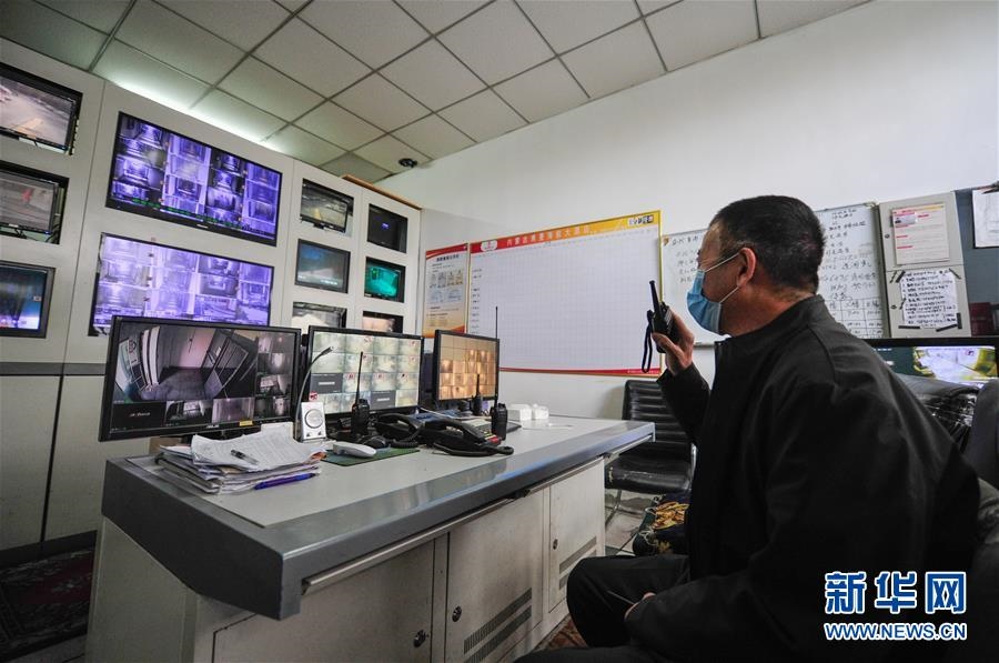 4月10日,在呼和浩特市賽罕區(qū)博曼酒店集中隔離醫(yī)學(xué)觀察點(diǎn),工作人員查看酒店監(jiān)控。 -