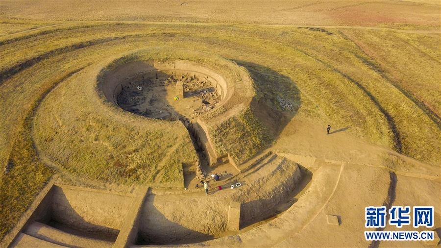這是10月25日拍攝的呼和浩特市武川縣境內(nèi)的北魏皇帝祭天遺址發(fā)掘現(xiàn)場(無人機(jī)照片)。新華社記者 彭源 攝 -