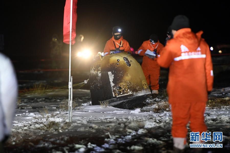 12月17日凌晨,嫦娥五號(hào)返回器攜帶月球樣品,采用半彈道跳躍方式再入返回,在內(nèi)蒙古四子王旗預(yù)定區(qū)域安全著陸。新華社記者 任軍川 連振 彭源 攝