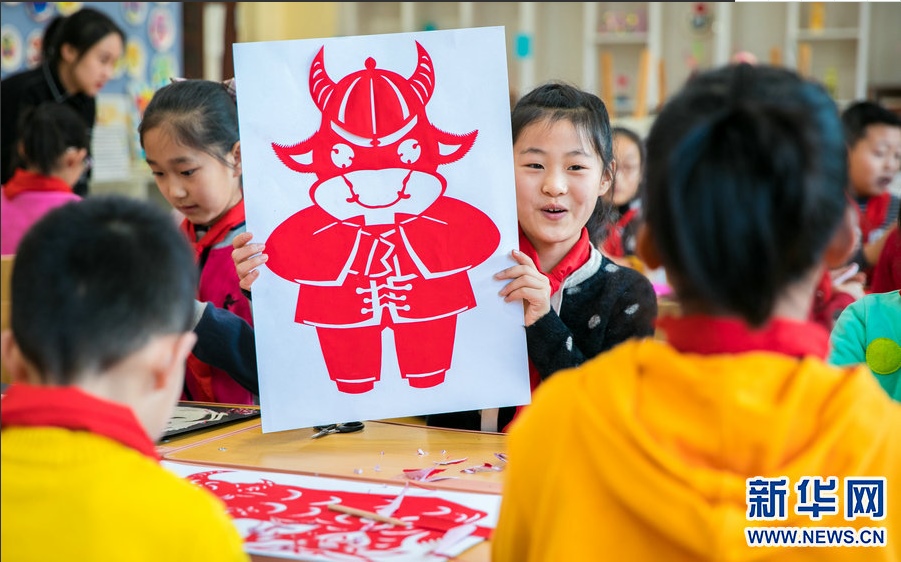 12月29日,呼和浩特市玉泉區(qū)恒昌店巷小學(xué)學(xué)生在剪窗花。新華網(wǎng) 發(fā)(丁根厚 攝) -
