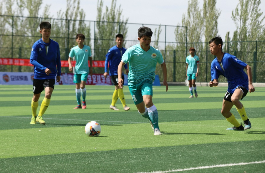 5月10日-17日,2021年內(nèi)蒙古自治區(qū)青少年足球聯(lián)賽暨青少年足球錦標(biāo)賽在內(nèi)蒙古師范大學(xué)足球?qū)W院舉行。此次比賽,共有來自全區(qū)各盟市的31支代表隊參賽,各代表隊以盟市為單位組隊報名,通過比賽,將進(jìn)一步探索主客場聯(lián)賽賽制,檢驗各地區(qū)足球青訓(xùn)體系建設(shè)成效,活躍校園足球文化,以期發(fā)現(xiàn)和選拔更多優(yōu)秀足球運動員。圖為比賽揭幕戰(zhàn)現(xiàn)場,烏海代表隊對陣鄂爾多斯代表隊。